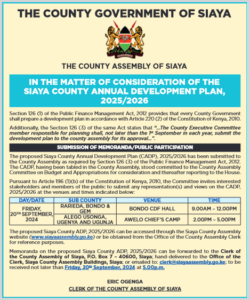 SUBMISSION OF MEMORANDA IN THE MATTER OF CONSIDERATION OF THE SIAYA COUNTY ANNUAL DEVELOPMENT PLAN,2025/2026